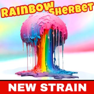 Rainbow Sherbet is a balanced 50/50 hybrid cannabis strain, famous for its uplifting effects and sweet, dessert-like aroma. It results from crossing Blackberry with Champagne, showcasing vibrant purple and green hues. The strain offers a sweet flavour profile, with notes of sugar-dusted strawberries and mint, providing a refreshing taste experience.