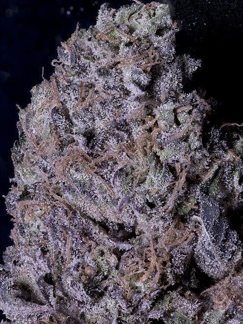 Don Gelato is a well-balanced hybrid that provides a mellow, yet quick-hitting high. It’s perfect for social settings and daytime use, thanks to its non-couch-locking effects. Users can expect enhanced psychedelic experiences like sound sensitivity and time dilation. Aesthetically, it features dark purple buds with orange hairs and a white crystal resin coating.