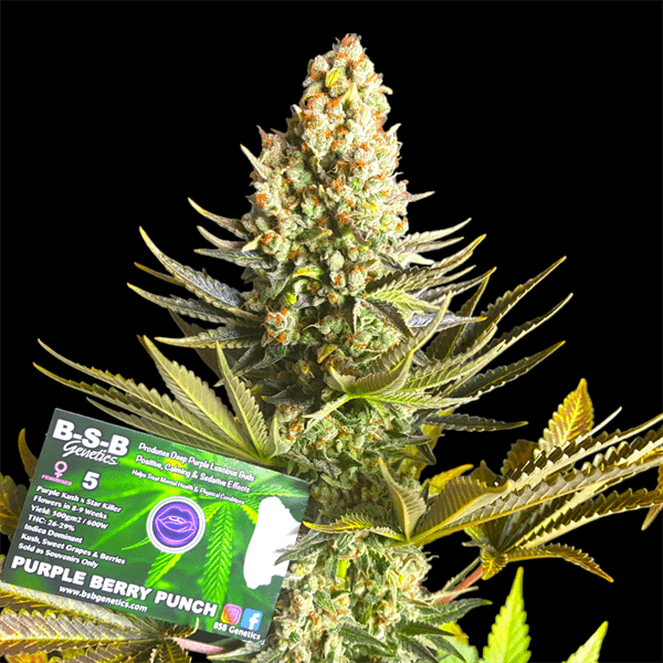 Purple Berry Punch is an indica-heavy strain, ideal for seasoned users and easy for beginners to grow. This strain provides a strong physical and mental high, promoting deep relaxation and bliss. It’s notable for its sweet grape and berry flavors, alongside woody and kushy undertones, earning it the nickname ‘Purple Star Killer’. Recommended for evening use, it produces dense, resin-coated buds and delivers a smooth smoking experience with long-lasting effects. Purple Berry Punch is rich in Beta-Caryophyllene, offering benefits like anxiety and pain relief, and more due to its therapeutic properties.
