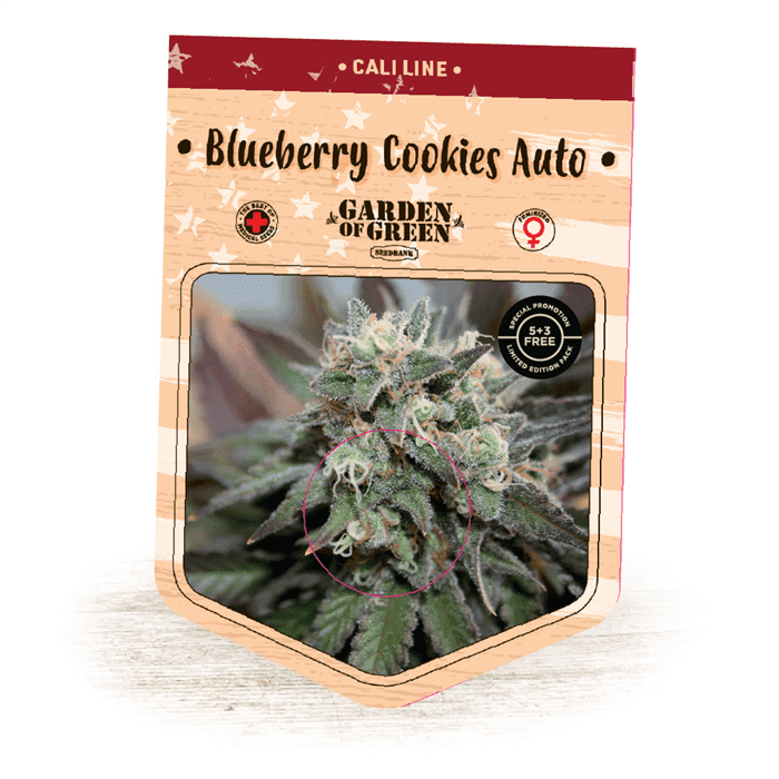 Blue Cookies seeds create a potent hybrid auto strain, combining Girls Scout Cookies and Blueberry Autos, both strong Indicas with high THC levels. Characterized by crystal-covered, resin-dripping nugs, the strain delivers a sweet berry cookies aroma. It’s heralded for its high yield, robustness, and ease of growth, suitable for both indoor and outdoor cultivation, making it a favorite amongst growers.