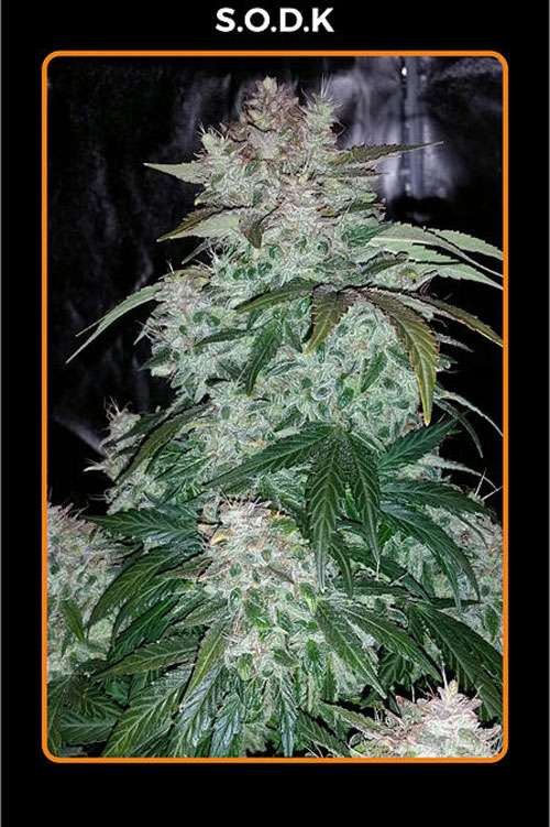S.O.D.K auto, standing for Sour Orange Diesel Kush, is a pleasurable hybrid strain that combines ease of growth, large colas, compact and crystal-covered buds with an exceptional aroma and taste. This strain results from a cross between Sour Orange Diesel and an Orange Diesel Auto, later integrated with Triangle Kush Auto to introduce a slight indica influence. Its breeding process focused on selecting heavy Sour Diesel dominant phenotypes with the aim to continue its line. The strain, predominantly sativa but with the added indica traits, promises big yields of over 6oz.
