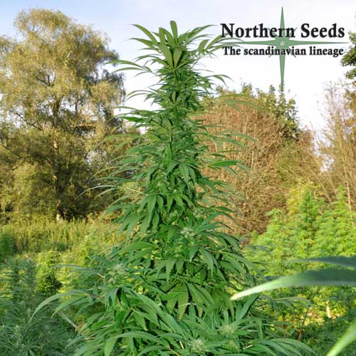 Ideal for outdoor growing in cold climates, short flowering time for generous yields. Skunky/spicy taste, upbeat high. 50% Indica/Sativa, THC 16%.