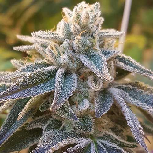 Indica-dominant hybrid with lineage of Forum Girl Scout Cookie and RD #2. High potency, significant yield, uplifting experience in 60-65 days.