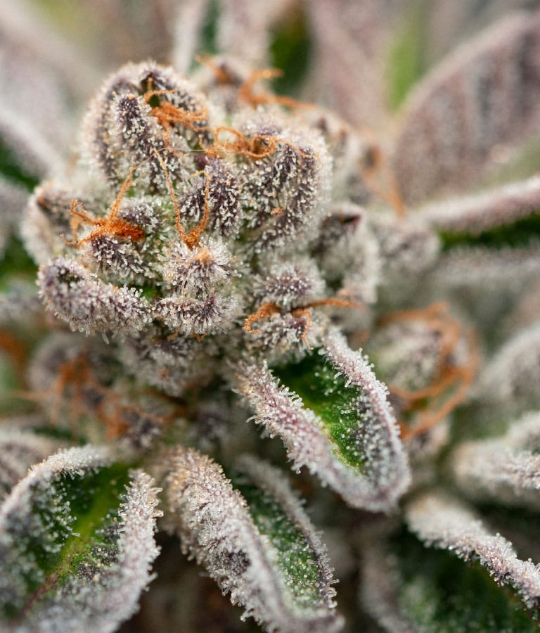 Purple Gelato is a potent Purple Haze x Gelato hybrid with 19–22% THC. Expect sweet fruity dessert flavours with earthy notes, an upbeat creative cerebral lift, then soothing full-body relaxation. High-maintenance grow, but rewarding purple, resinous buds.