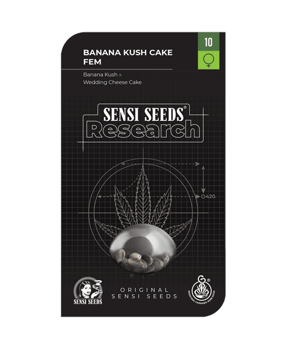 Banana Kush Cake Feminized, a hybrid strain with 65% indica and 35% sativa, was launched by Sensi Seeds in 2021 under their Research project. It combines the genetics of Banana Kush and Wedding Cheesecake, offering experimental growers a chance to explore its various phenotypes. The strain prefers temperate or continental climates, excelling both outdoors and indoors, and is attuned to techniques like SCROG, SOG, and supercropping. Flowering within seven to nine weeks, it is known for large yields and compact growth.