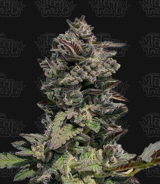 Auto Forbidden Mints, developed by Terp Treez co., is an auto-flowering strain crossing Cherry Pie, Tangie, and Double Up Mints from Seed Junkies. Known for a sweet, minty aroma and flavor, it also packs a high THC content with a quick 8-9 week flowering time. The strain boasts large, light green buds with purple hues, densely packed with trichomes, and a unique terpene profile.